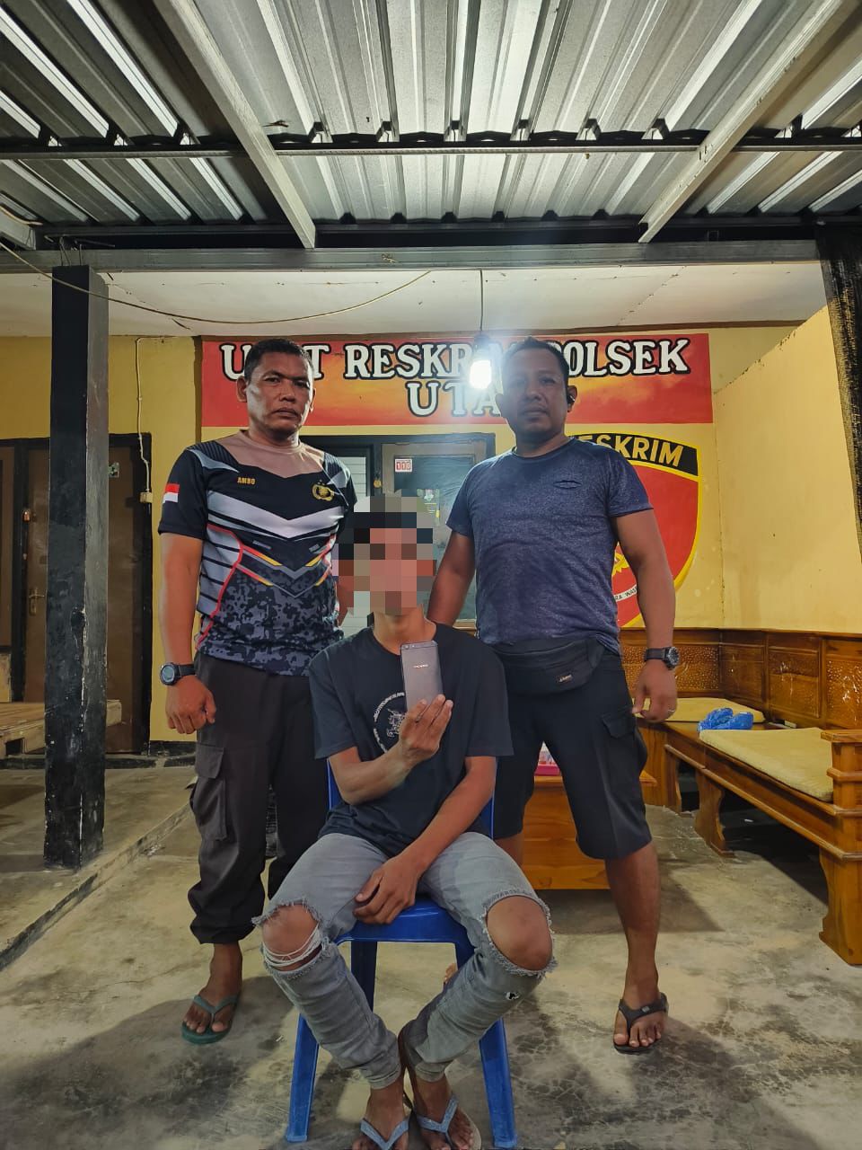 Saat ini, terduga pelaku beserta barang bukti berupa satu unit ponsel OPPO A57 warna hitam telah diamankan di Mapolsek Utan untuk proses penyidikan lebih lanjut.