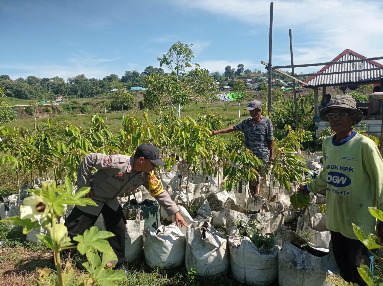 Bhabinkamtibmas Desa Dore Bara Pantau lahan pekarangan warga dalam rangka dukungan program ketahanan pangan nasional menuju Indonesia Emas 2045
