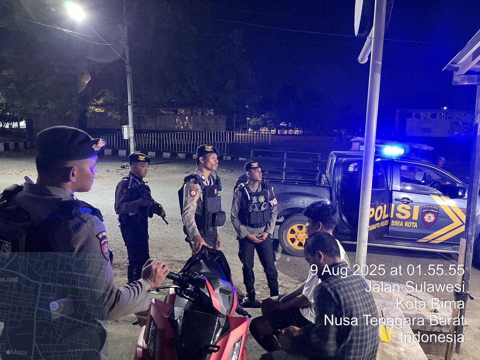 Kota Bima, NTB (9 Agustus 2025) – Dalam upaya menciptakan rasa aman dan nyaman di tengah masyarakat, Regu 2 Unit Turjawali Sat Samapta Polres Bima Kota melaksanakan patroli Blue Light di wilayah hukum Polres Bima Kota, Sabtu (9/8/2025) pukul 04.00 WITA.