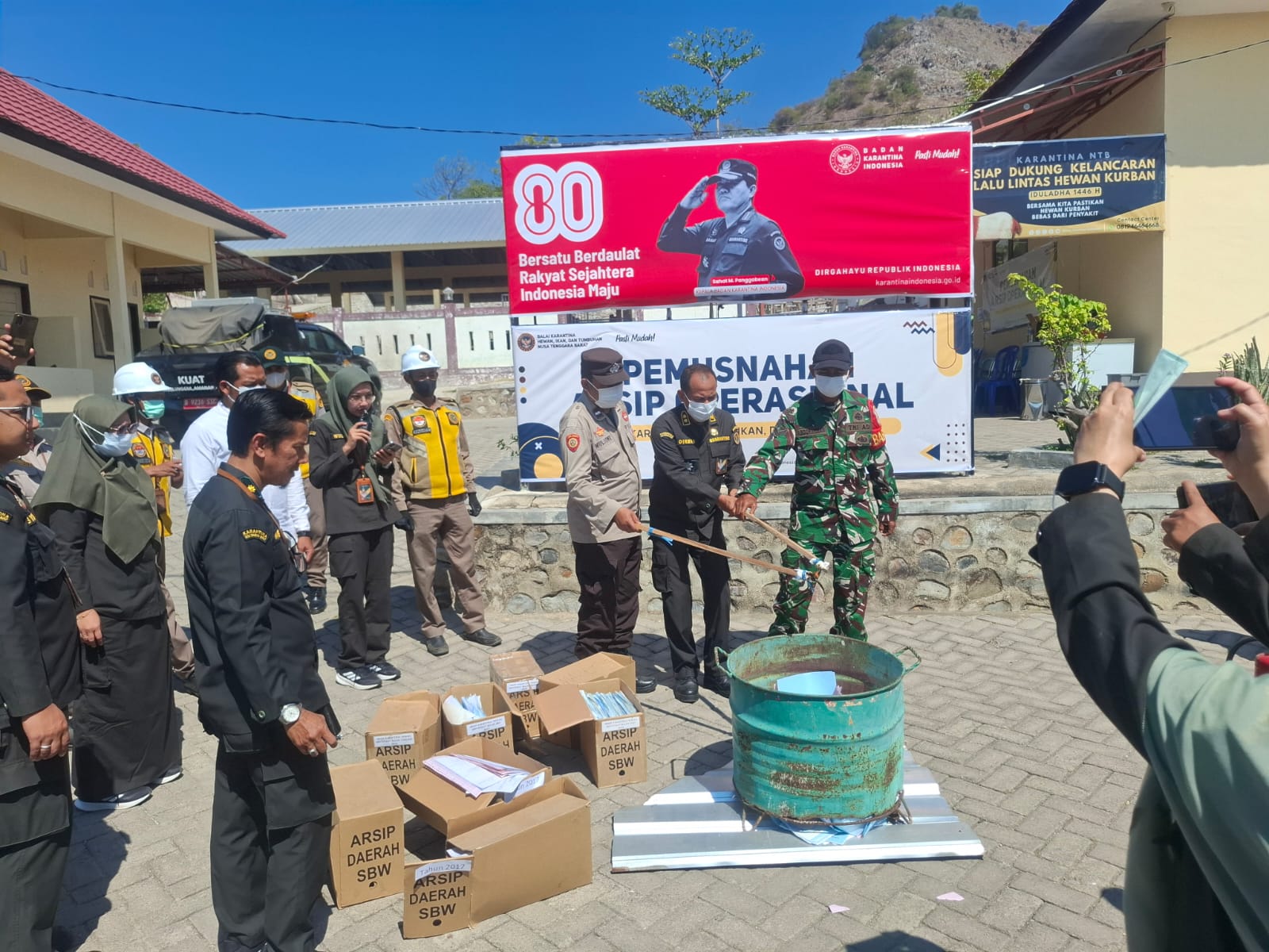 Polsek Poto Tano Kawal Pemusnahan Arsip Operasional Balai Karantina NTB