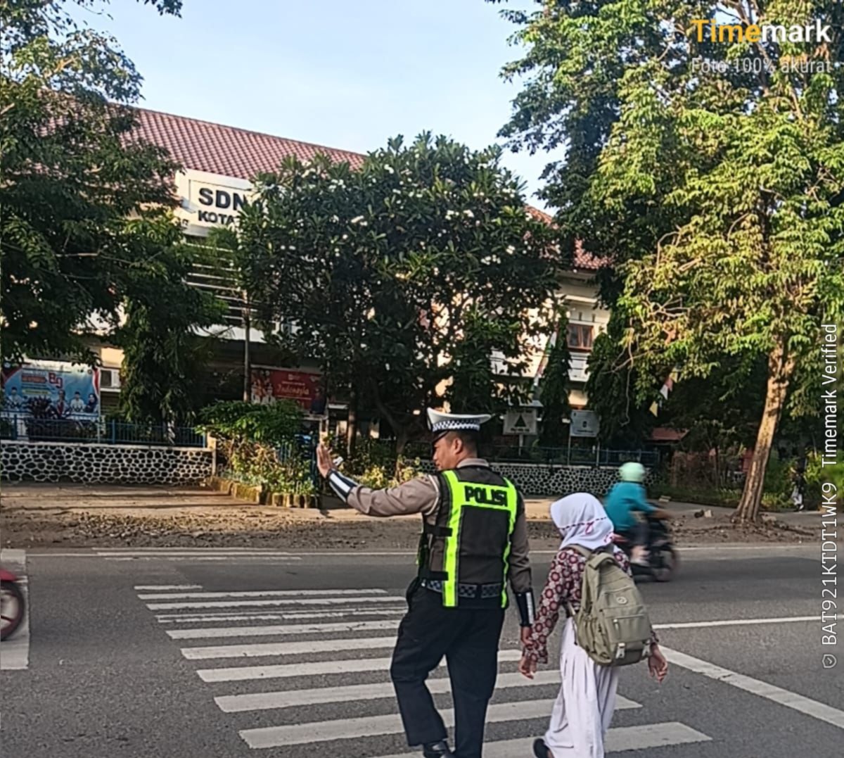 Selain melakukan pengaturan arus lalu lintas, personel Sat Lantas juga membantu menyeberangkan pejalan kaki, anak-anak sekolah, serta pengguna jalan lainnya. Kehadiran petugas di lapangan diharapkan dapat memberikan rasa aman dan nyaman bagi masyarakat yang sedang beraktivitas di pagi hari.