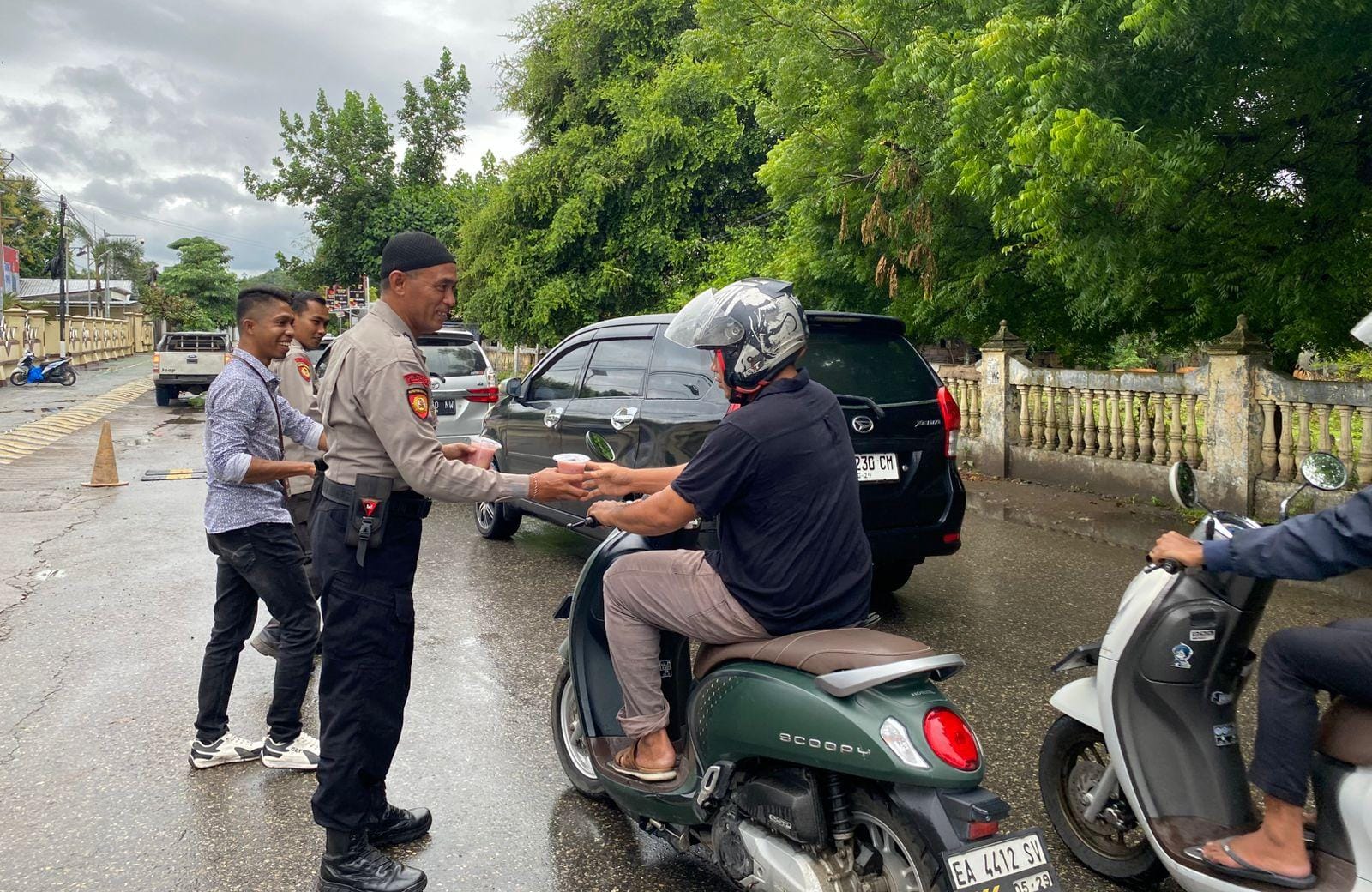 Selain pembagian takjil, Polres Bima juga melakukan pengaturan arus lalu lintas untuk memastikan kelancaran perjalanan menjelang berbuka puasa.