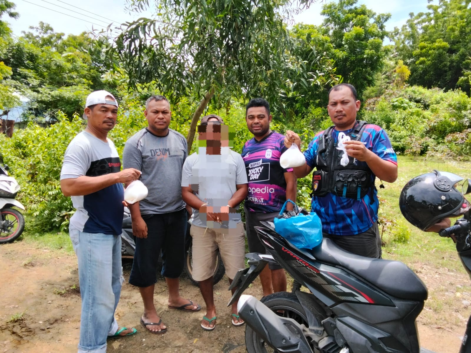 Hasil penggeledahan tersebut petugas berhasil menyita 10 Detonator aktif dan bahan campuran lainnya yang di sembunyikan oleh terduga pelaku di jok Sepeda motor.