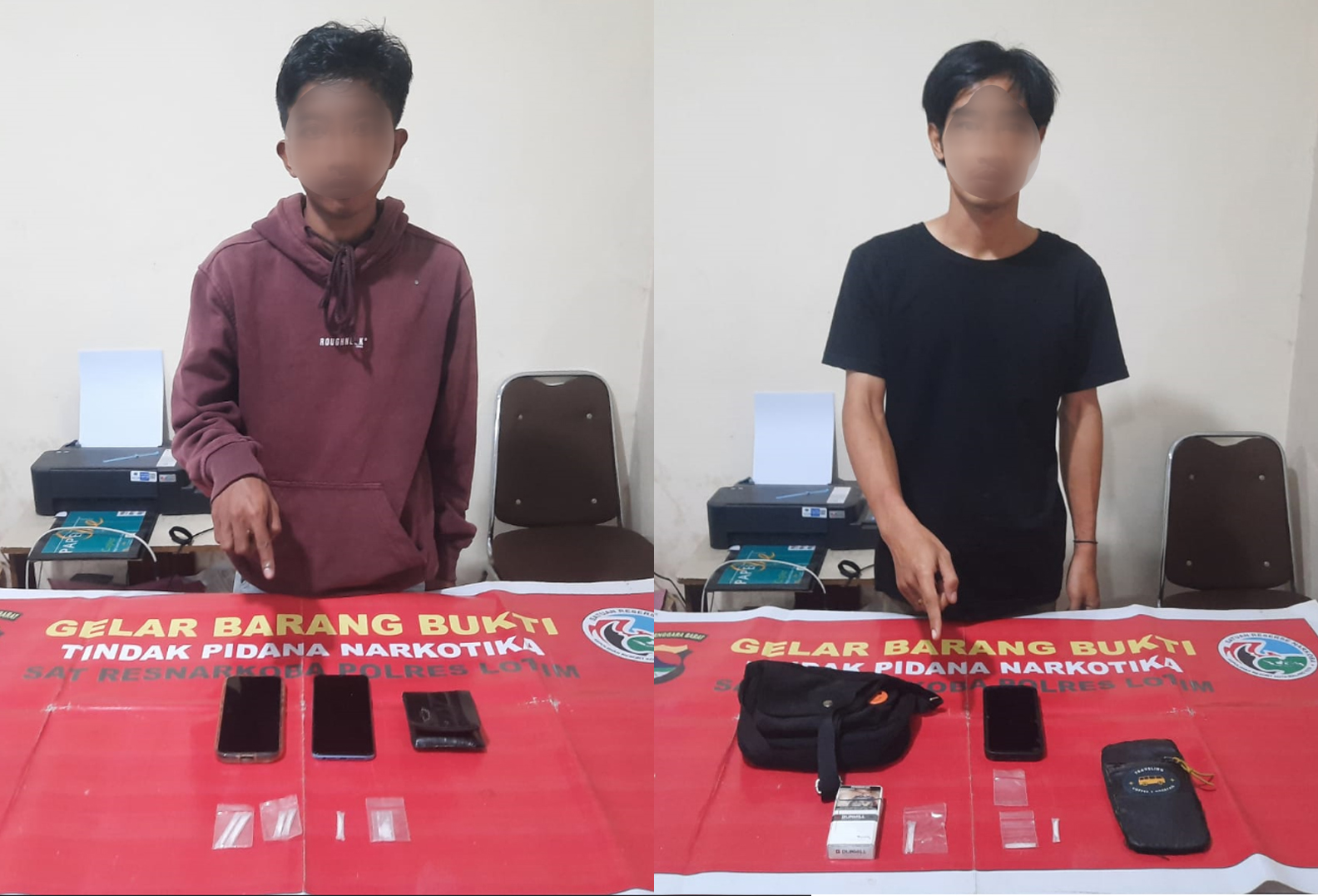 Sementara dari tangan FF, polisi menemukan lima poket sabu dan satu plastik klip kecil berisi sabu yang disimpan di dalam dompet di saku celana belakang kanan, serta dua unit handphone Android. Barang bukti sabu milik FF memiliki berat bruto 3,43 gram. “Keduanya diduga berperan sebagai pengedar di wilayah Kecamatan Selong. Saat ini para terduga pelaku beserta barang bukti telah diamankan di Satresnarkoba Polres Lombok Timur untuk proses hukum lebih lanjut,” tutup Fedy.