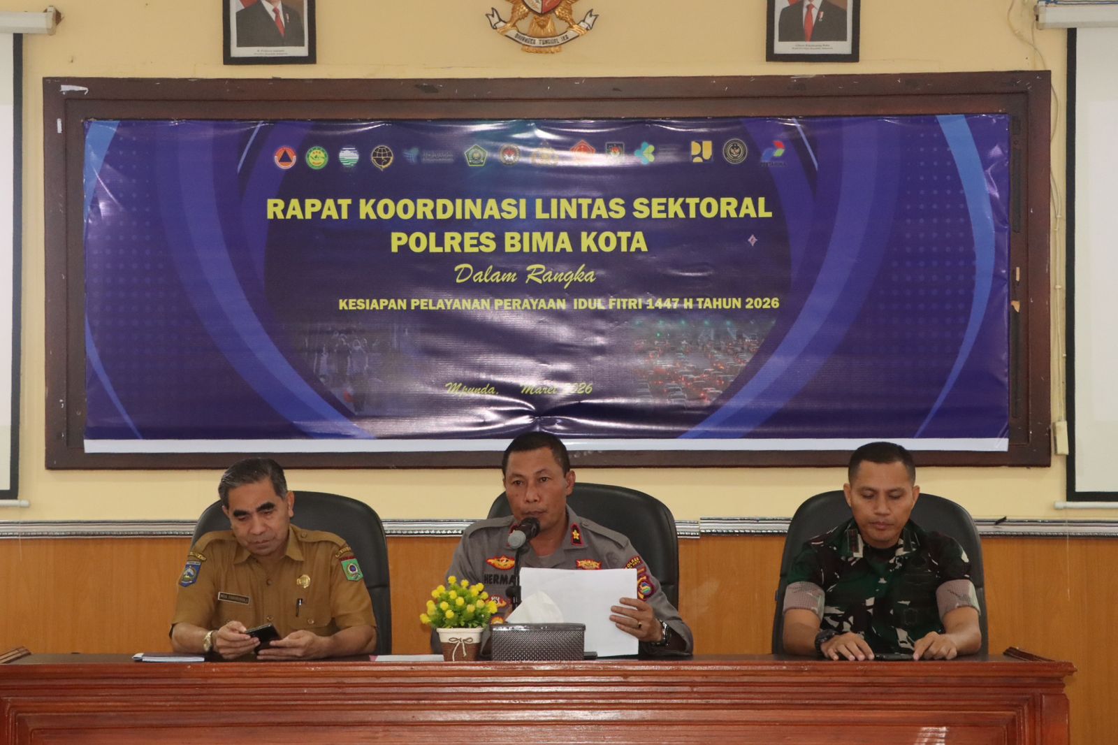 Kota Bima, NTB (12 Maret 2026) – Dalam rangka memastikan kesiapan pelayanan kepada masyarakat selama perayaan Hari Raya Idul Fitri 1447 Hijriah tahun 2026, Polres Bima Kota menggelar Rapat Koordinasi (Rakor) Lintas Sektoral yang berlangsung pada Selasa, 10 Maret 2026 sekitar pukul 13.50 WITA di Ruang Rupatama Polres Bima Kota.