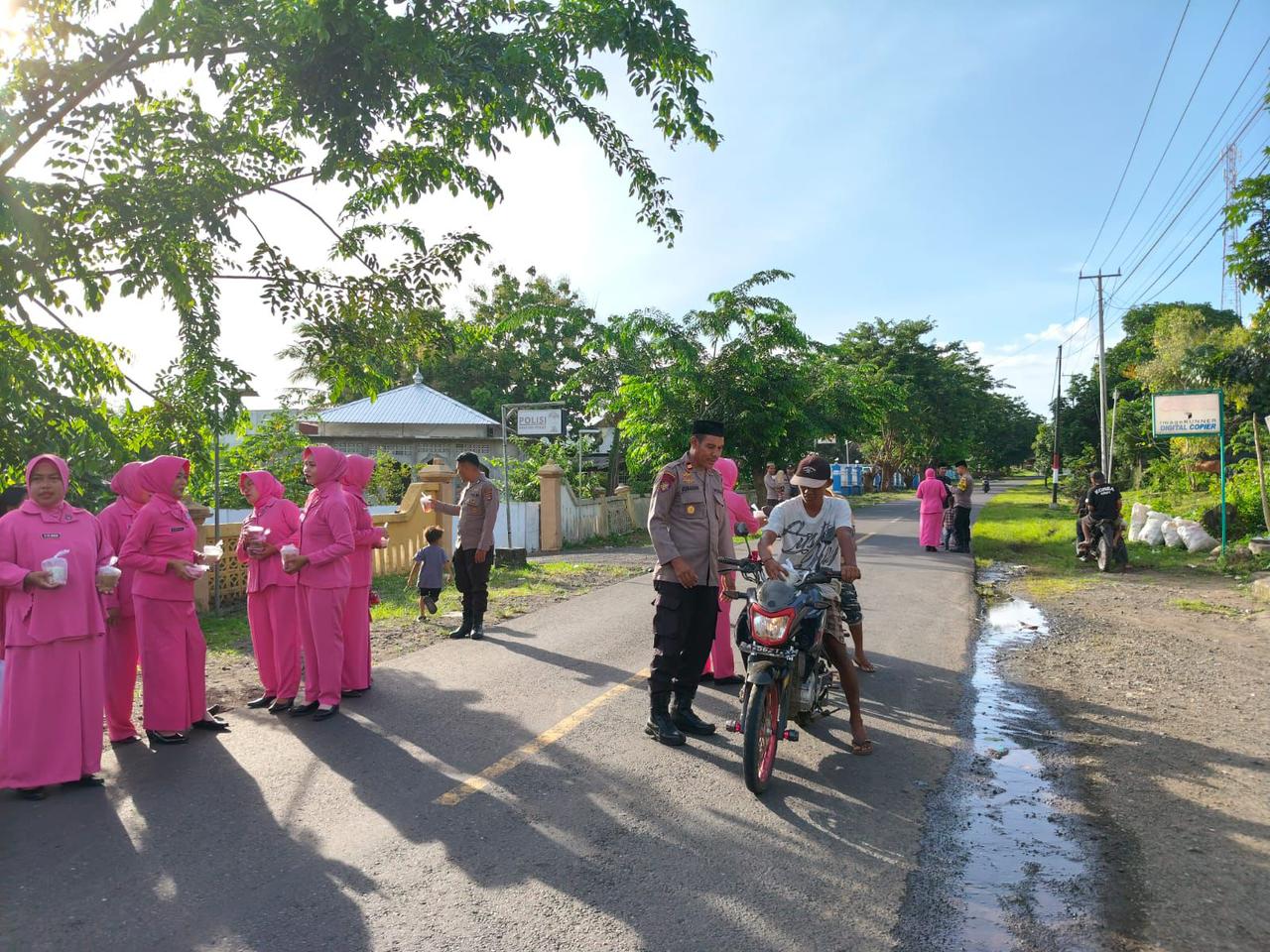 Kegiatan tersebut dilaksanakan pada hari Kamis, 12 Maret 2025 sekitar pukul 16.45 WITA, bertempat di jalan raya depan Mako Polsek Pekat. Kegiatan dipimpin langsung oleh Kapolsek Pekat IPTU Jubaidin bersama Ketua Bhayangkari Ranting Pekat Ny. Anggraini Ningsih Jubaidin, serta diikuti oleh anggota Polsek Pekat dan Bhayangkari.