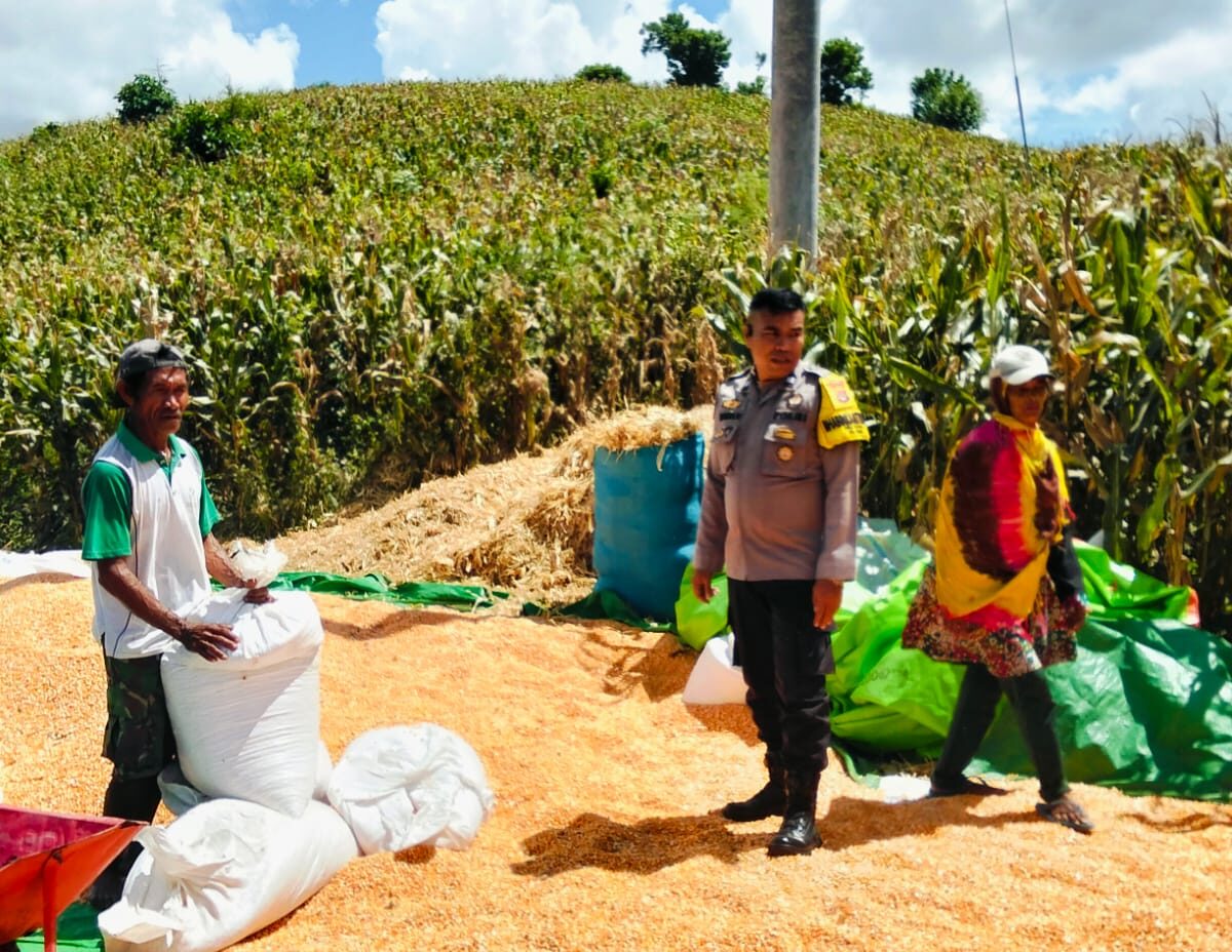 Dampingi Petani Jemur Jagung, Bhabinkamtibmas Desa Matua Perkuat Ketahanan Pangan