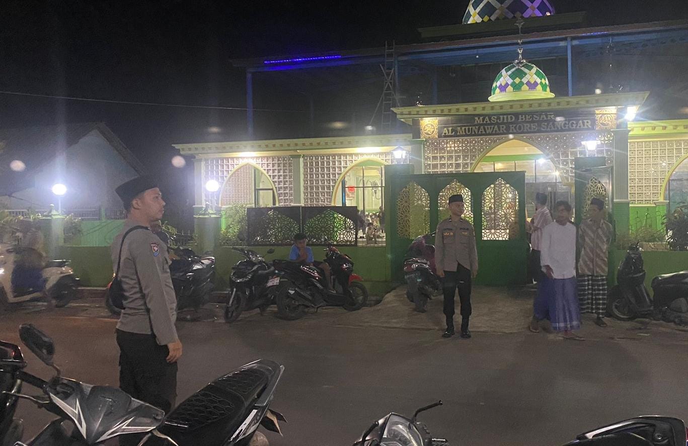 Polsek Sanggar Polres Bima Kabupaten Gelar Patroli dan Pengamanan Sholat Tarawih di Masjid Besar Al-Munawar Desa Kore
