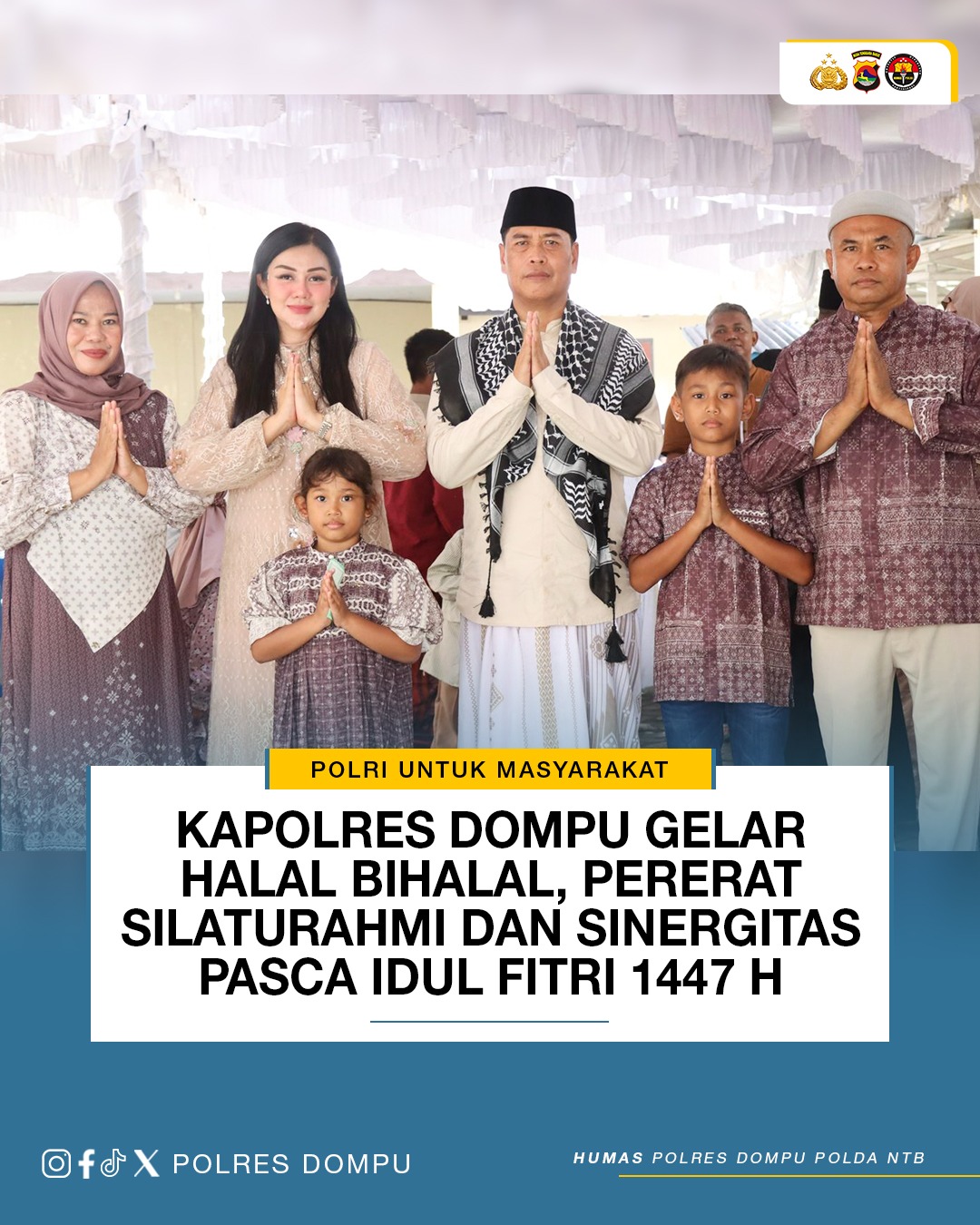Dalam suasana penuh kehangatan pasca Hari Raya Idul Fitri, Kapolres Dompu AKBP Sodikin Fahrojin Nur, S.I.K., menggelar kegiatan Halal Bihalal yang bertempat di kediamannya pada Sabtu (21/03/2026) mulai pukul 09.00 WITA hingga selesai.