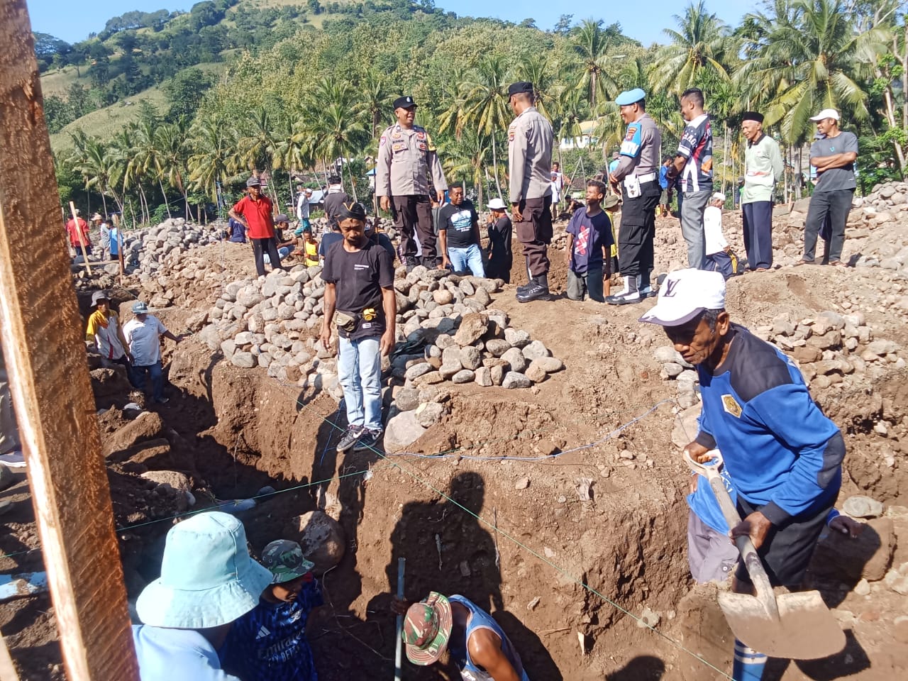 Personel Polsek Ambalawi Gotong Royong Bersama Warga, Peletakan Batu Pertama Masjid Nurul Hikmah Desa Kole