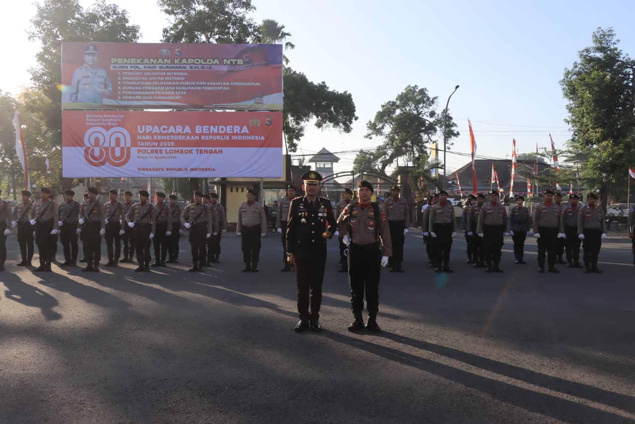 Lombok Tengah, (NTB) – Kepolisian Resor Lombok Tengah menggelar upacara peringatan Hari Ulang Tahun (HUT) Republik Indonesia Ke-80, Minggu (17/8).