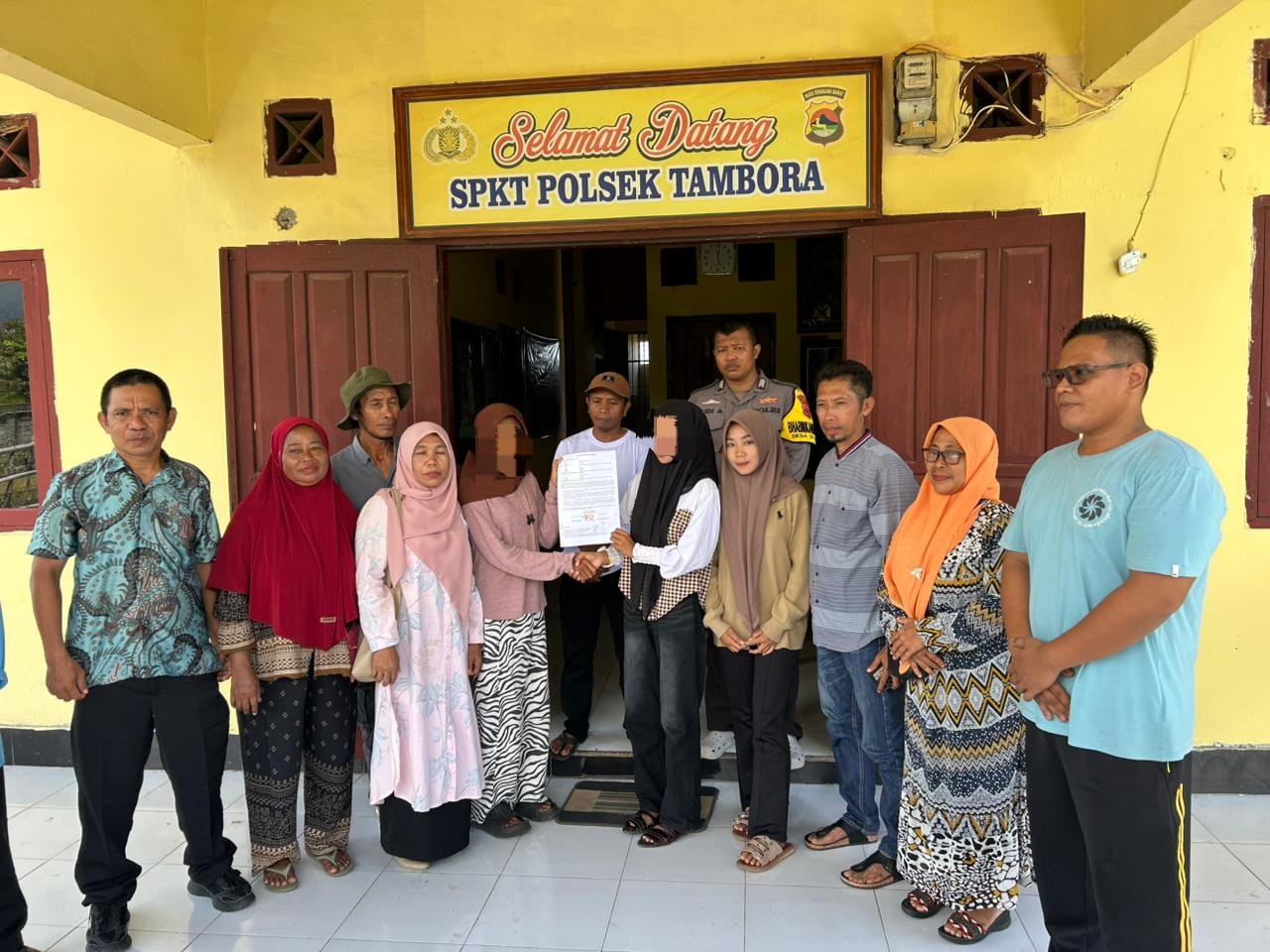 Kemudian pukul 16.00 Wita, Ketua BPD Kelurahan Oi Panihi bersama korban dan orang tuanya mendatangi Polsek Tambora mengadukan kejadian yang dialami Korban.