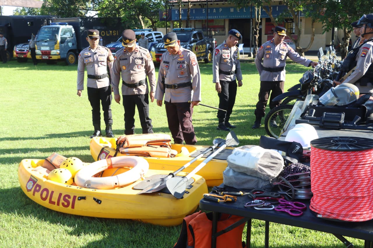 Sumbawa Barat – Dalam rangka meningkatkan kesiapsiagaan menghadapi potensi bencana alam, Polres Sumbawa Barat menggelar Apel Kesiapan Antisipasi Bencana dan Kontigensi Aman Nusa I Rinjani 2026, yang dilaksanakan di Lapangan Sarja Arya Racana Mapolres Sumbawa Barat, Senin (06/04/2026).