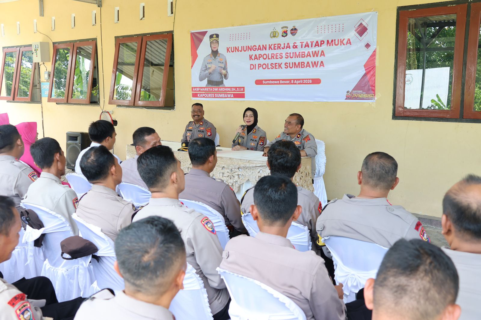 Sumbawa Besar, NTB — Dalam upaya memastikan kesiapan operasional serta memberikan motivasi langsung kepada personel di tingkat kewilayahan, Kapolres Sumbawa, AKBP Marieta Dwi Ardhini, S.H., S.I.K., melaksanakan rangkaian kunjungan kerja (Kunker) ke tiga Polsek jajaran, yakni Polsek Utan, Polsek Rhee, dan Polsek Sumbawa, pada Rabu (08/04/2026).