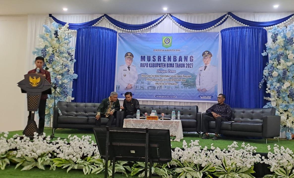 Musrenbang dengan tema “Pemantapan Tata Kelola Pemerintahan Sebagai Fondasi Penguatan Pembangunan Manusia Bima dan Infrastruktur Dasar yang merata dan Berkeadilan”.di buka oleh Wakil Bupati Bima dr Irfan Zubaidi.