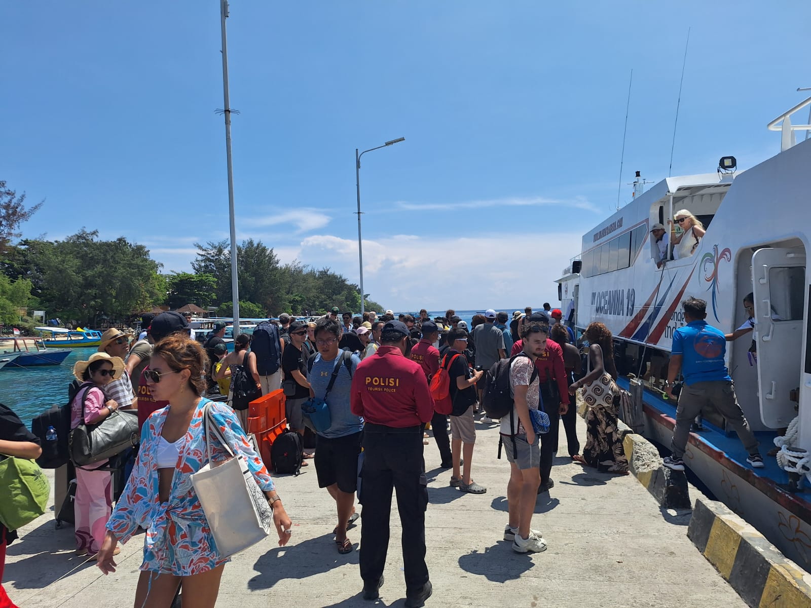 Dalam kegiatan tersebut, personel melakukan pemantauan aktivitas penumpang dan wisatawan, khususnya di area penyeberangan publik boat dan fast boat yang menjadi jalur utama mobilitas wisatawan.
