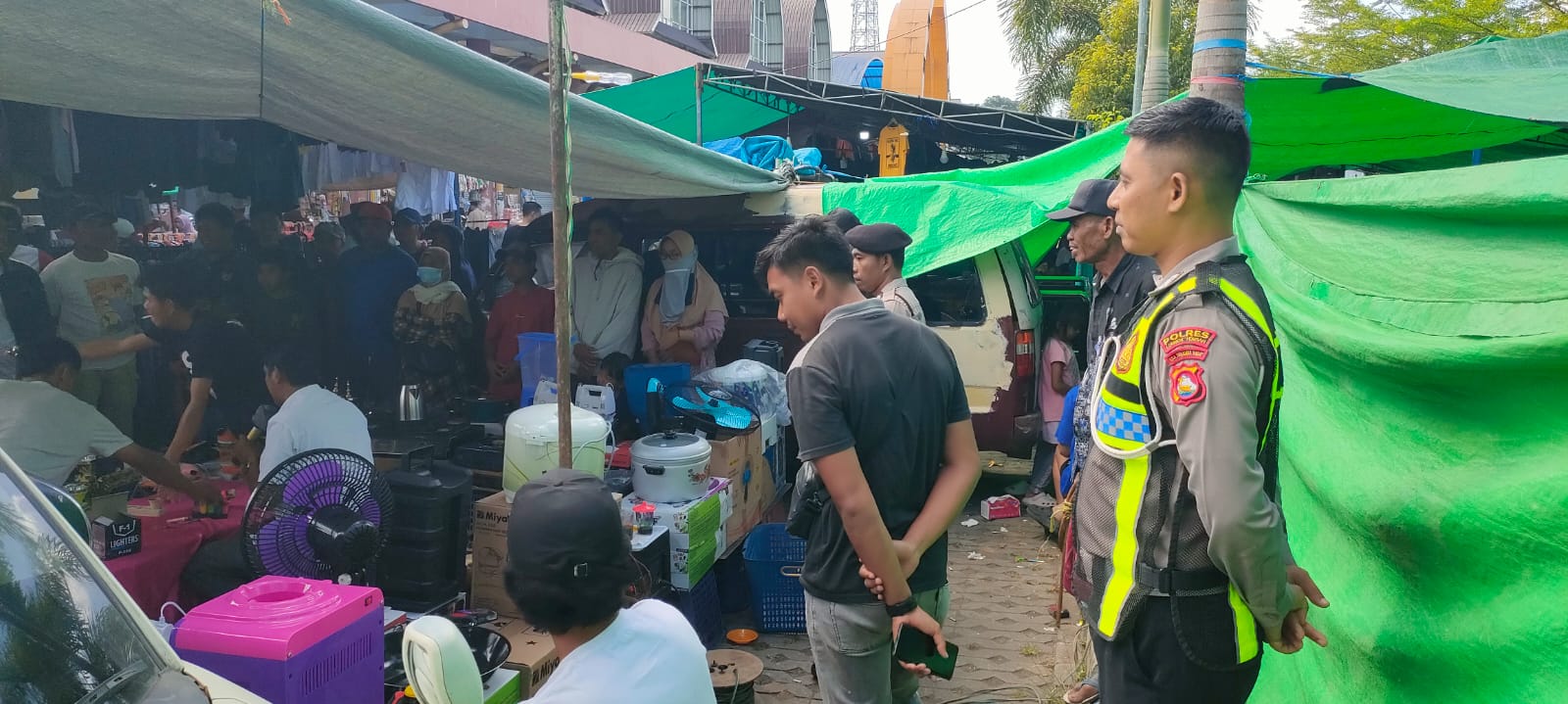 Lombok Tengah – Dalam rangka menjaga keamanan, keselamatan, ketertiban, dan kelancaran lalu lintas (kamseltibcar lantas), anggota Polsek Kopang melaksanakan kegiatan patroli sekaligus pengaturan arus lalu lintas di kawasan Pasar Jelojok, Desa Kopang Rembiga, Kecamatan Kopang, Kabupaten Lombok Tengah, Minggu (19/4/2026).