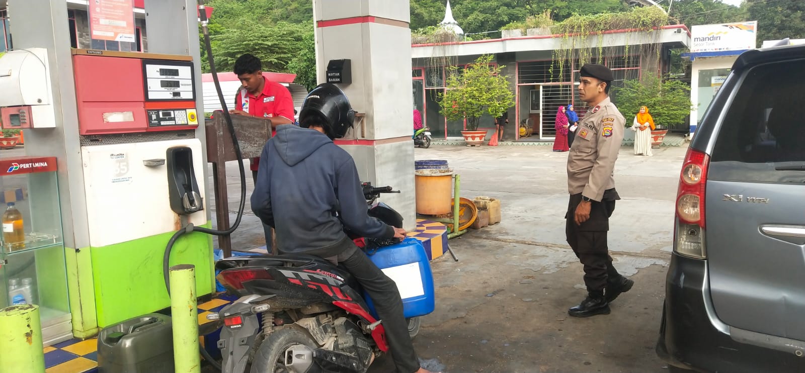 Dalam kegiatan tersebut, personel juga melakukan pengawasan terhadap proses penyaluran BBM kepada masyarakat, memastikan tidak terjadi antrean panjang yang berpotensi menimbulkan kerawanan, serta menjamin distribusi berjalan lancar dan merata.