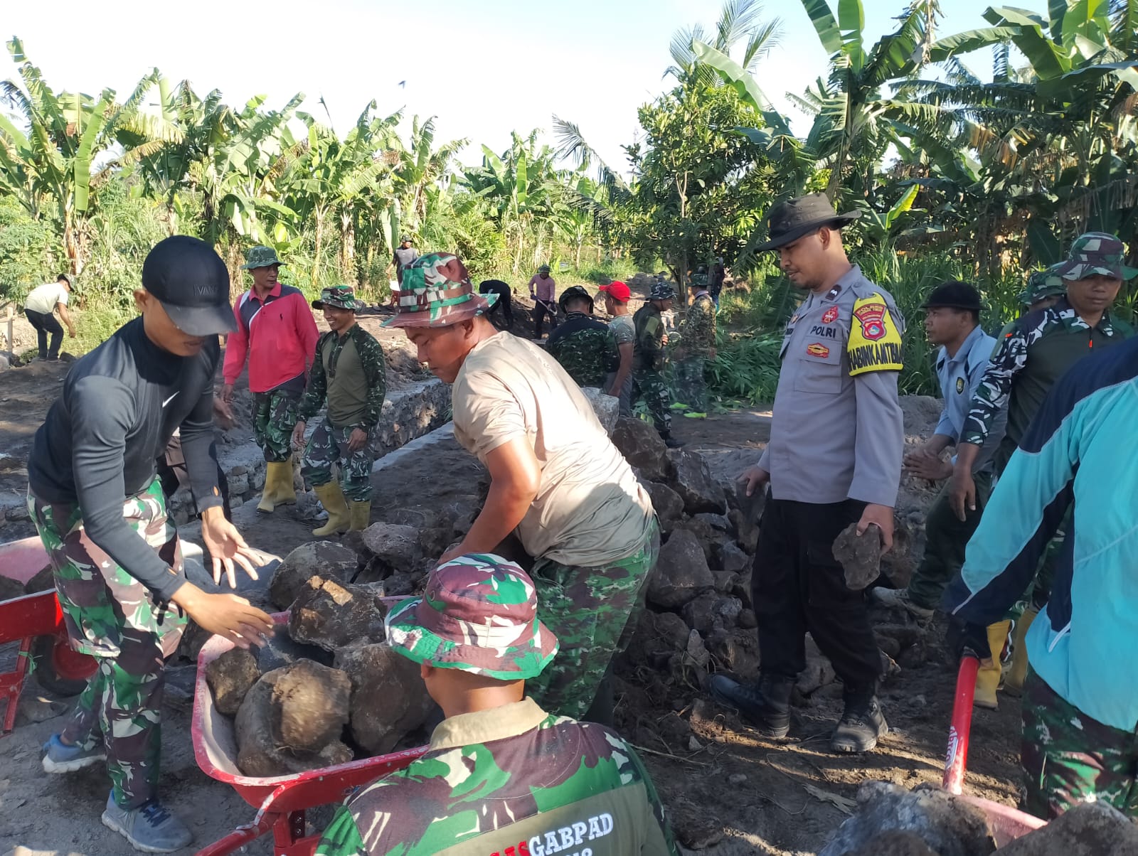 Dalam pelaksanaannya, dua personel Polsek Suralaga bersama anggota TNI dan masyarakat bahu-membahu melaksanakan berbagai pekerjaan. Kegiatan meliputi pembersihan lingkungan, pembangunan jalan desa, serta perbaikan sarana dan prasarana umum lainnya. Kolaborasi ini menjadi wujud nyata semangat gotong royong yang masih terjaga di tengah masyarakat. Selain membantu pembangunan fisik, personel juga aktif berinteraksi dengan warga. Kehadiran aparat memberikan motivasi tersendiri bagi masyarakat yang terlibat.