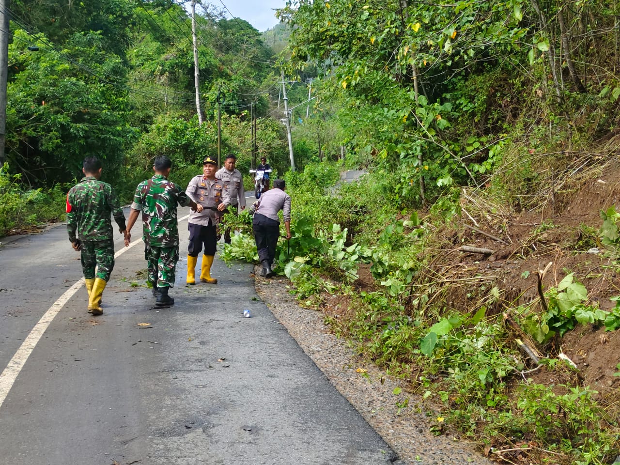 Selain membersihkan material yang menutupi jalan, personel gabungan juga memberikan imbauan kepada warga untuk tetap waspada terhadap potensi bencana alam di musim penghujan, terutama tanah longsor dan pohon tumbang.