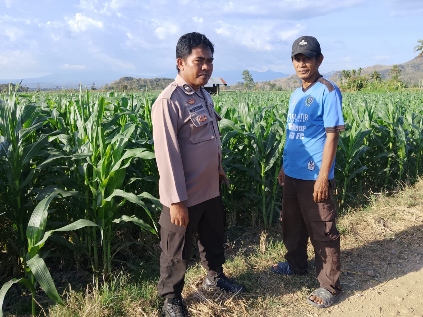 Dalam rangka mendukung pelaksanaan Program Ketahanan Pangan Nasional sebagai bagian dari visi besar Indonesia Emas 2045, Bhabinkamtibmas (BKTM) Desa Mbawi Polsek Dompu AIPDA Muztahidin melaksanakan kegiatan pemantauan lahan jagung milik warga binaan atas nama Bapak Ismail di Dusun Owo Desa Mbawi Kecamatan Dompu Kabupaten Dompu.
