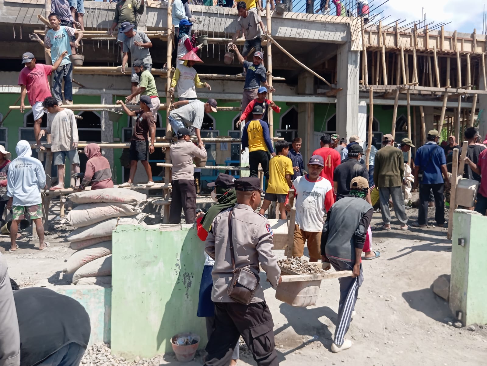 Personel Polsek Sape Gotong Royong Renovasi Masjid Bersama Warga