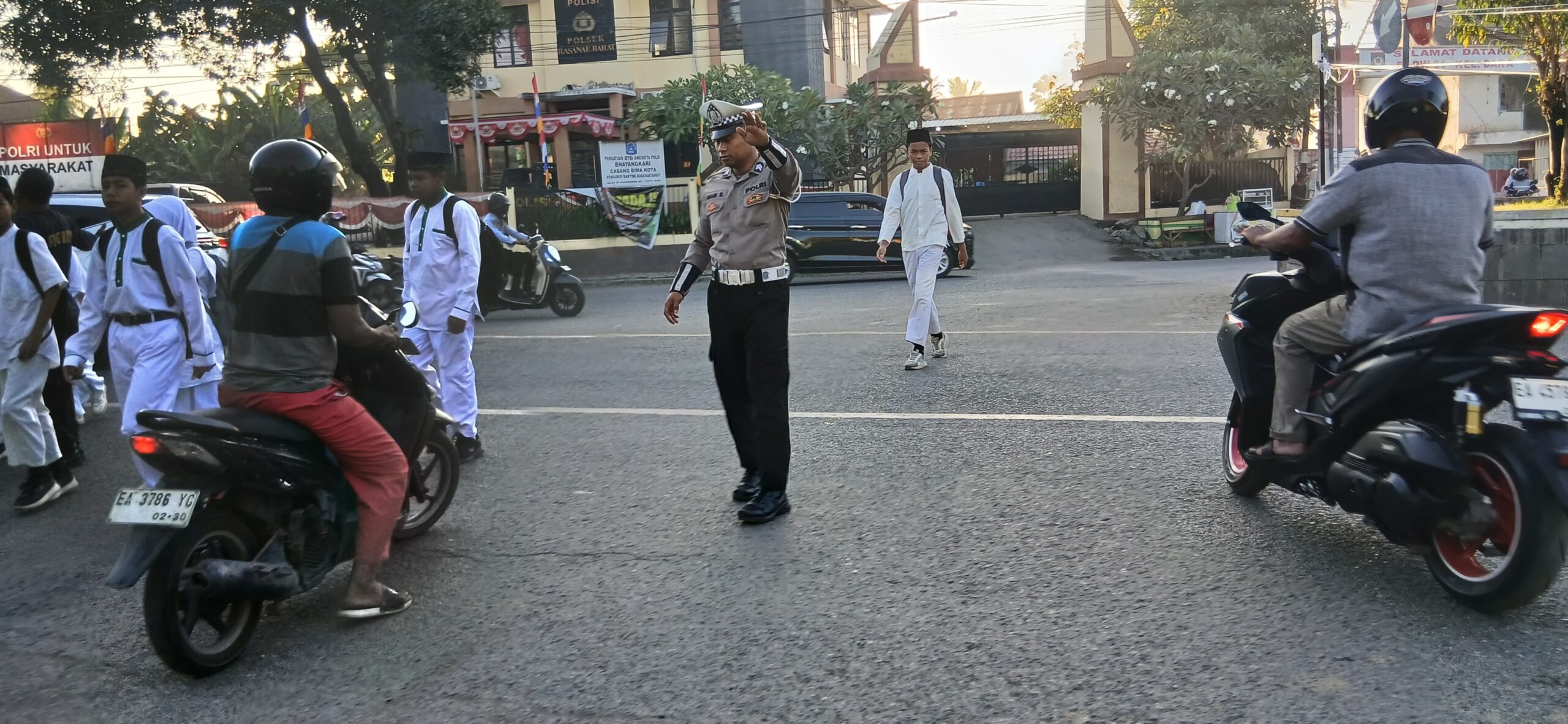 Kota Bima, NTB (1 Agustus 2025) – Guna memberikan rasa aman dan nyaman kepada pengguna jalan serta mendukung kelancaran arus lalu lintas pada jam sibuk pagi hari, Anggota Lalu Lintas Polsek Rasanae Barat Polres Bima Kota melaksanakan kegiatan Rawan Pagi/Strong Point pada Jumat, 1 Agustus 2025, sekitar pukul 06.30 Wita, bertempat di depan MTSN I Kota Bima.