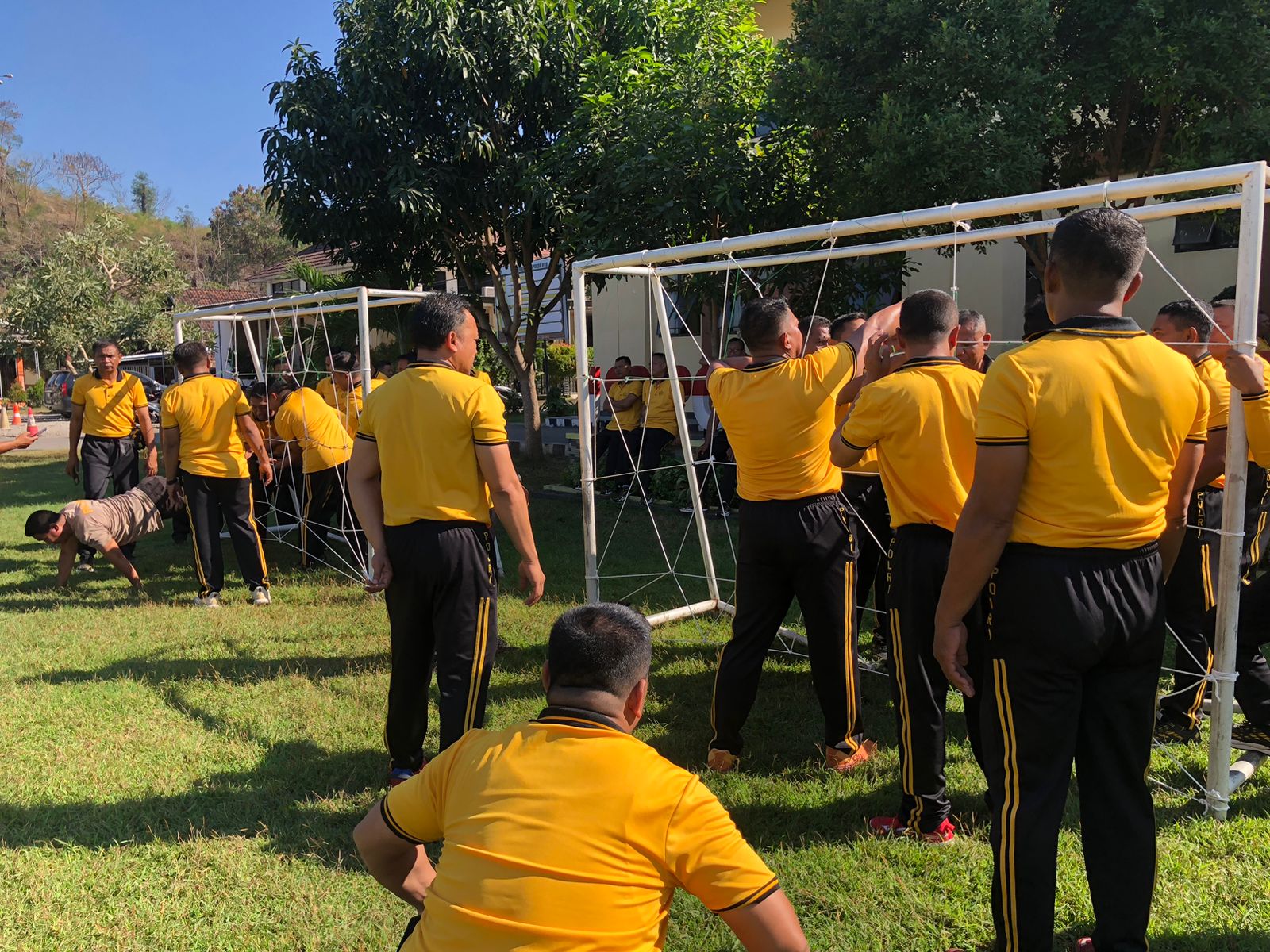 Permainan tersebut tidak hanya menguji kemampuan koordinasi dan komunikasi, tetapi juga mencerminkan pentingnya kerja sama dalam setiap pelaksanaan tugas.