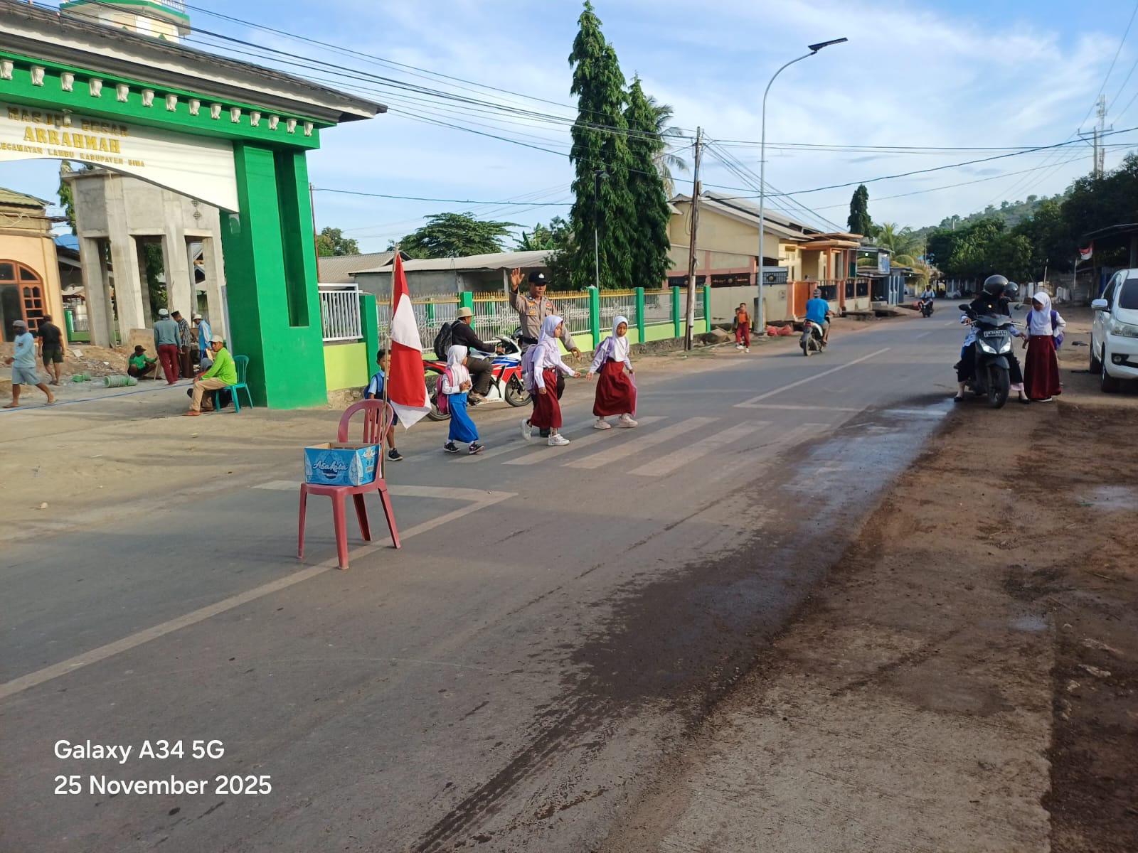 Bima, NTB (25 November 2025) – Dalam rangka memberikan keamanan dan kenyamanan bagi para pelajar yang berangkat ke sekolah, Ps. Kanit Samapta Polsek Lambu Aiptu Saiful melaksanakan kegiatan rawan pagi pada Selasa (25/11/2025) pukul 07.00 WITA, yang berlokasi di depan MIN 2 Bima, Desa Rato, Kecamatan Lambu, Kabupaten Bima.